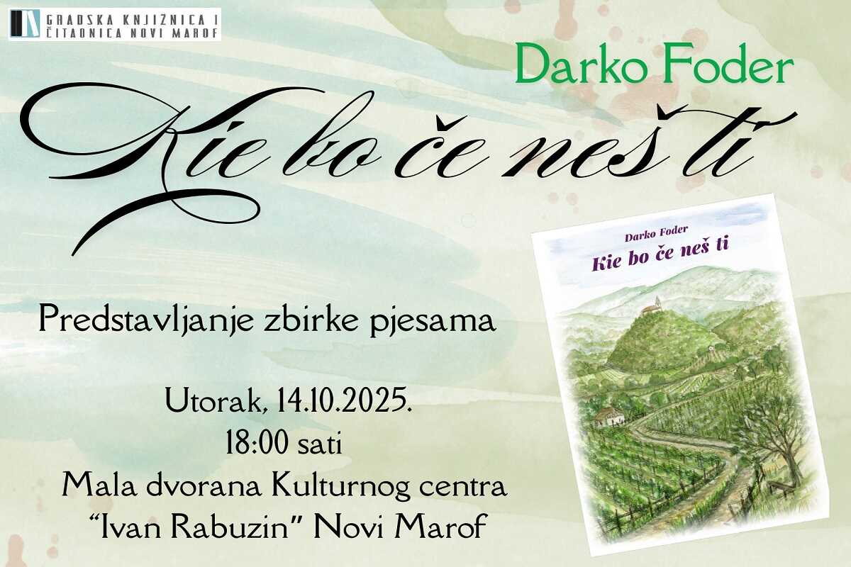 Predstavljanje zbirke poezije “Kie bo če neš ti” Darka Fodera održat će se u utorak 14. listopada, s početkom u 18 sati u maloj dvorani Kulturnog centra Ivan Rabuzin. Ulaz je besplatan!