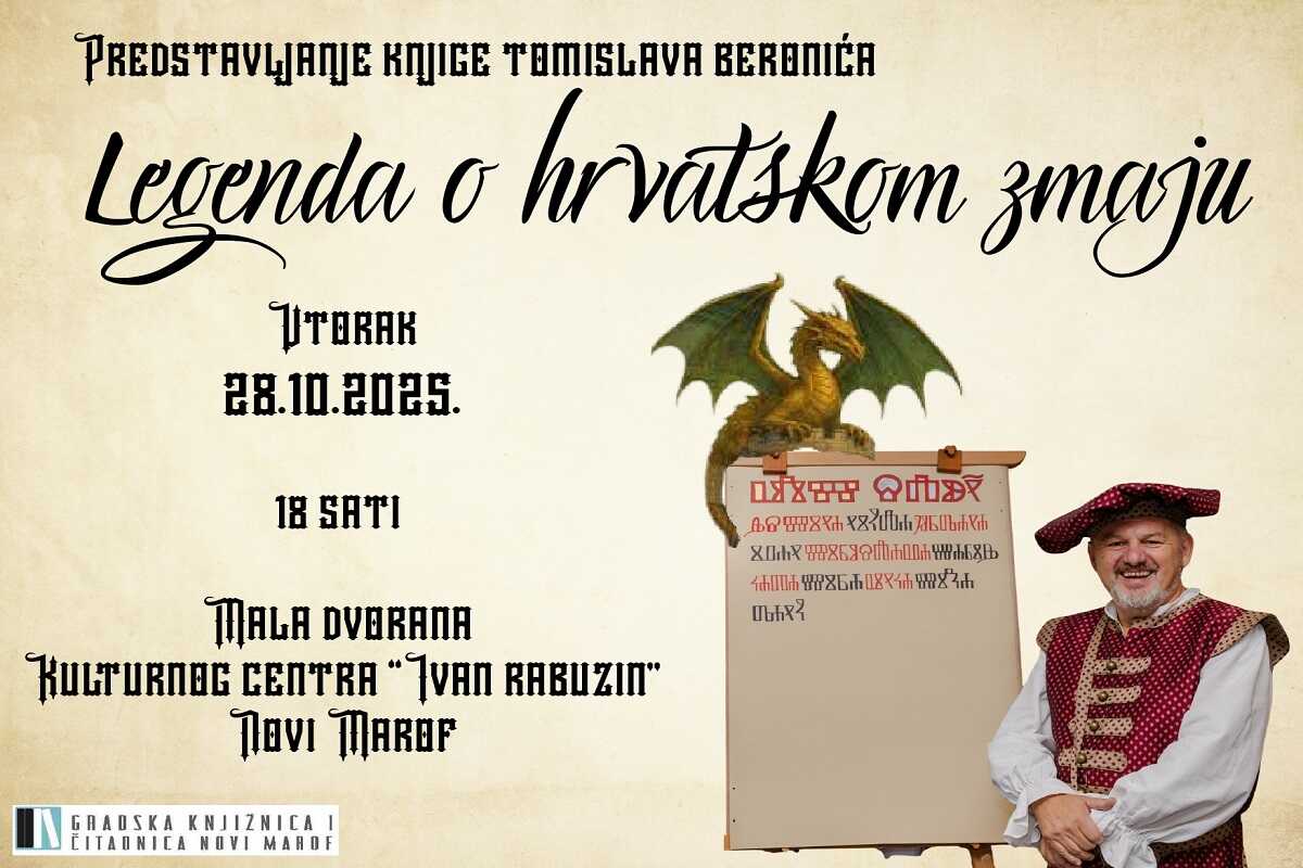U utorak, 28. listopada, u maloj dvorani Kulturnog centra Ivan Rabuzin održano je predstavljanje knjige Tomislava Beronića “Legenda o hrvatskom zmaju”. Uz predstavljanje knjige, održano je i glasanje za najbolju sliku zmaja.