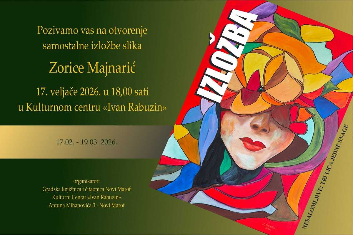 Gradska knjižnica i čitaonica Novi Marof poziva Vas na otvorenje izložbe „Nesalomljive: tri lica jedne snage“ koja će se održati u Kulturnom centru “Ivan Rabuzin” u utorak, 17. veljače 2026. godine s početkom u 18 sati.