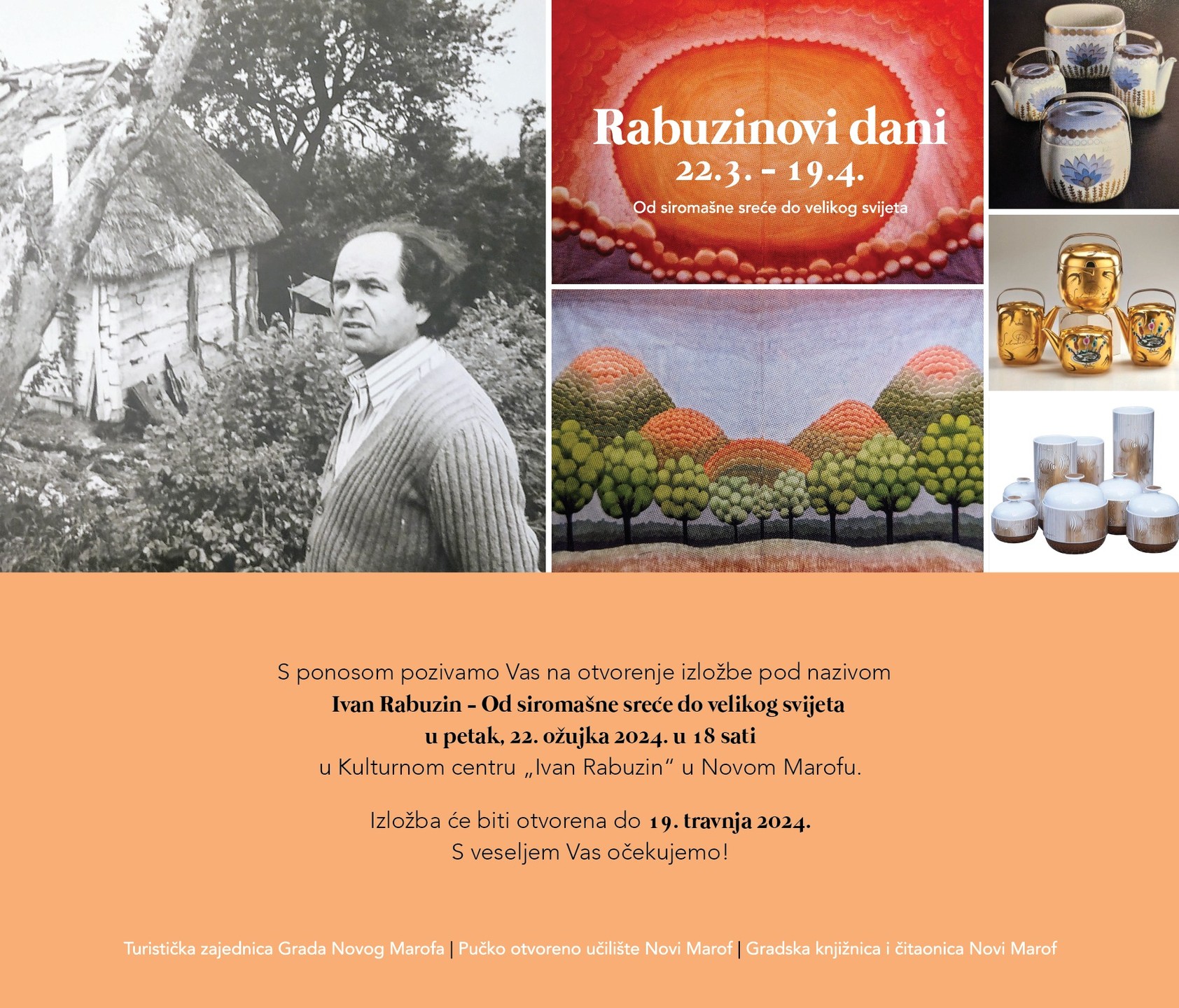 U petak 22.3.2024. otvorenjem izložbe Od siromašne sreće do velikog svijeta u 18h u Kulturnom centru “Ivan Rabuzin” Novi Marof započinju 8. Rabuzinovi dani!