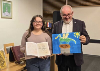 Posjetitelji su imali priliku upoznati autorov stvaralački put, kao i inspiraciju koja stoji iza ove zanimljive i maštovite priče o zmaju kao simbolu hrabrosti, mudrosti i identiteta. Promociju je dodatno obogatilo glasanje za najbolju sliku zmaja, koje je potaknulo kreativnost i veselje među najmlađima. Nakon uzbudljivog glasanja, pobjedu je zasluženo odnijela djevojčica Barbara, čiji je rad oduševio prisutne, a nagrada joj je uručena uz veliki pljesak i osmijehe publike.