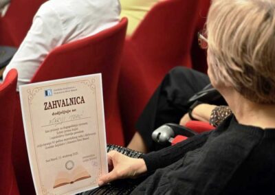 Posebno je zahvalila svima koji su ostavili neizbrisiv trag u radu knjižnice: dugogodišnjoj ravnateljici Nadici Tuk, kolegici Meliti Toplak, nedavno umirovljenoj Nadici Pintač, kao i sadašnjim kolegicama koje svakodnevno predano rade kako bi knjižnica bila živo i toplo mjesto susreta. „U knjižničarstvu se mnogo toga može izmjeriti, poput broja knjiga, članova, posudbi, ali ono najvrjednije ne stane u brojke. Knjižnica postoji zbog ljudi i dok god u nju dolazite, ona će trajati.” , istaknula je ravnateljica.